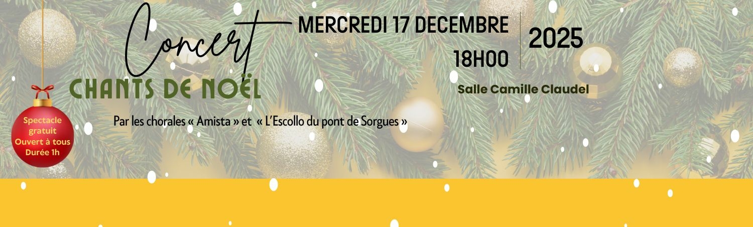 Le 17 décembre, la salle Camille Claudel accueillera les chorales Amista et L’Escollo du Pont de Sorgues pour un concert de chants de Noël. Un moment chaleureux, accessible à tous, pour célébrer la magie des fêtes en musique ! Mercredi ......