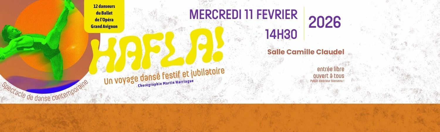 HAFLA ! Mercredi 11 février à 14h30 Salle Camille Claudel, dans le CH de Montfavet Ne manquez pas ce spectacle de danse contemporaine rythmé et accessible à tous ! Pour la première fois au centre hospitalier de Montfavet, nous accueillons ......